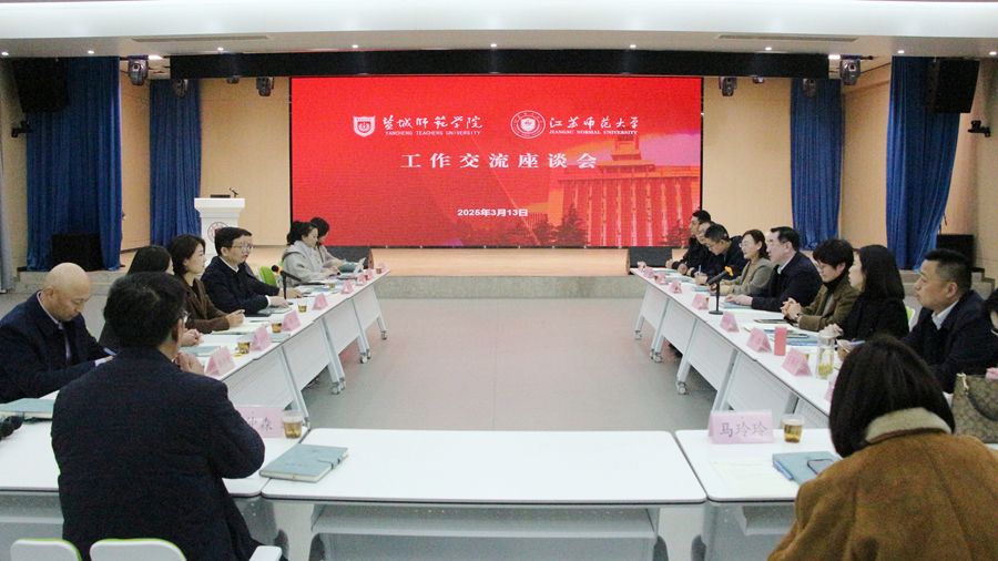 3月13日下午,盐城师范学院党委常委、副校长庞波一行到我校调研交流。校党委常委、副校长商亮出席座谈会,教务部、党委学生工作部、保卫部、校团委等单位的相关负责同志参会。