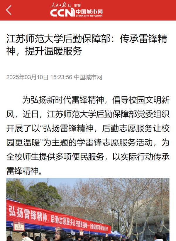 江苏师范大学后勤保障部:传承雷锋精神,提升温暖服务