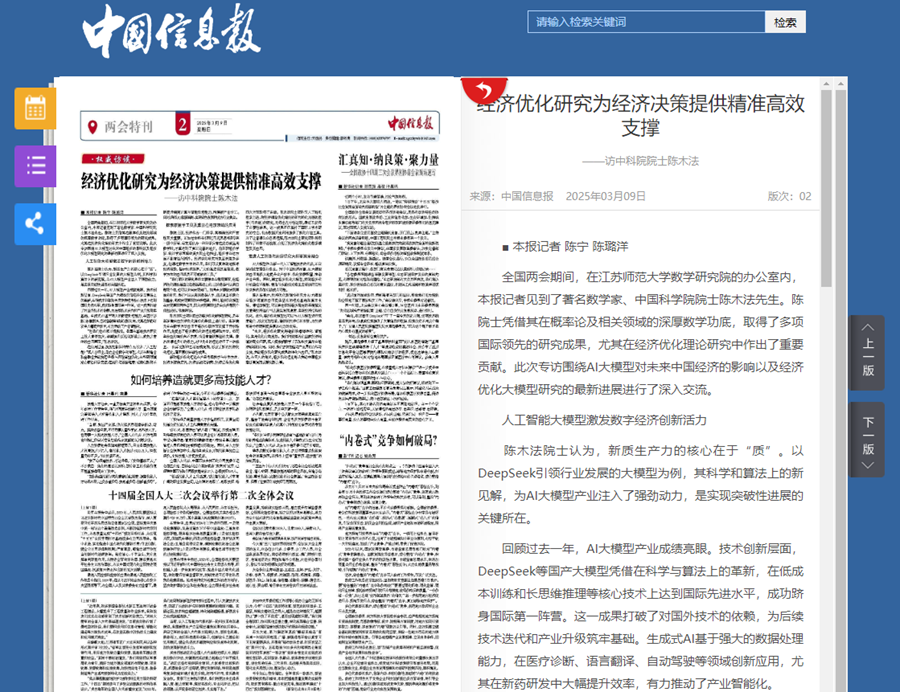 经济优化研究为经济决策提供精准高效支撑——访中科院院士陈木法