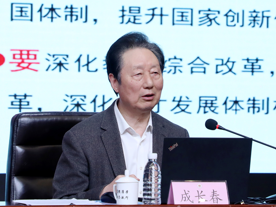 成长春的专题报告以“服务教育强国建设 推进高等教育改革”为主题,解读了党的二十届三中全会精神,特别强调了深入实施科教兴国战略、人才强国战略、创新驱动发展战略,统筹推进教育科技人才体制机制一体化改革的重要性,并从“深刻领会《教育强国建设规划纲要(2024-2035年)》精神”“扎实推进高校教育改革须处理好的十个关系”两个主要方面,对地方高校根据自身特点,更新发展理念,明确发展路径,深入实施综合改革,积极回应来自高等教育内部和外部的相关诉求,作了详细讲解。
