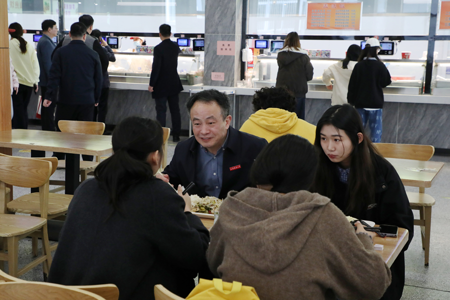 芮国强在到“一站式”学生社区工作站之前,还在午餐时间到云龙校区学生食堂,与同学们边用餐边交流,了解在校学习生活情况,听取相关工作意见建议。