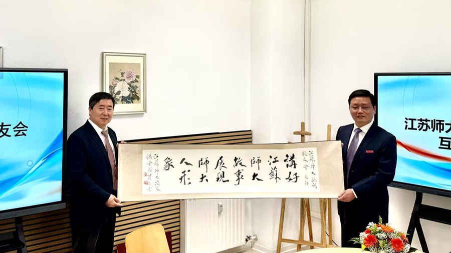 彭雯受中国驻杜塞尔多夫总领馆总领事的委托,代表总领馆向江苏师范大学欧洲校友会的成立致以热烈祝贺。她表示,江苏师大欧洲校友会承载着凝聚校友情谊,弘扬中华文化,促进中外友好的使命,希望江苏师大欧洲校友会当好中华文化的传播者、欧洲交流的推动者、中欧友好的建设者。