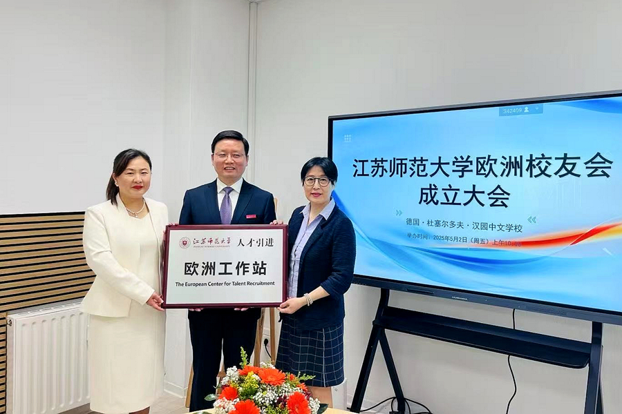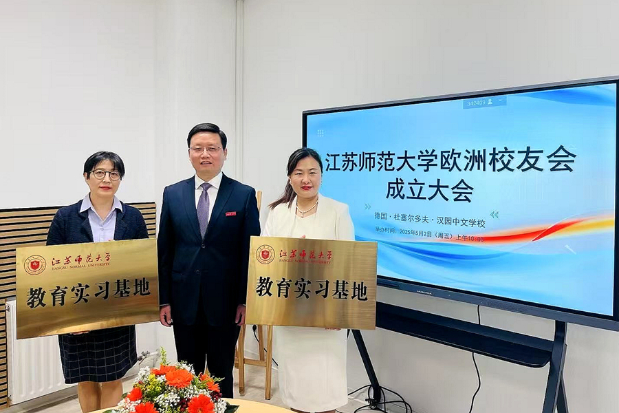 当地时间5月2日上午,江苏师范大学欧洲校友会成立大会在德国杜塞尔多夫汉园中文学校举行。中国驻杜塞尔多夫总领馆领侨部主任彭雯应邀出席会议,校党委常委、副校长商亮,学校相关部门和相关学院负责同志、欧洲校友代表欢聚一堂,共同见证欧洲校友会成立。会议由1979级外语系校友王杰主持。
