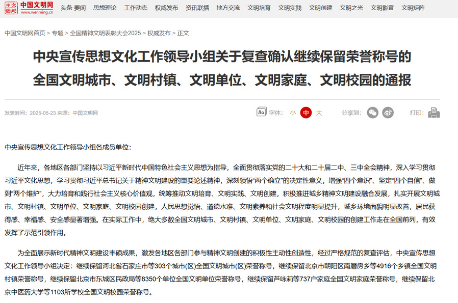 5月23日,全国精神文明建设表彰大会在京召开,习近平总书记对精神文明建设工作作出重要指示。会上公布了第七届全国文明城市、文明村镇、文明单位,第三届全国文明家庭、文明校园,经严格规范的复查评估,我校确认继续保留“全国文明校园”荣誉称号。