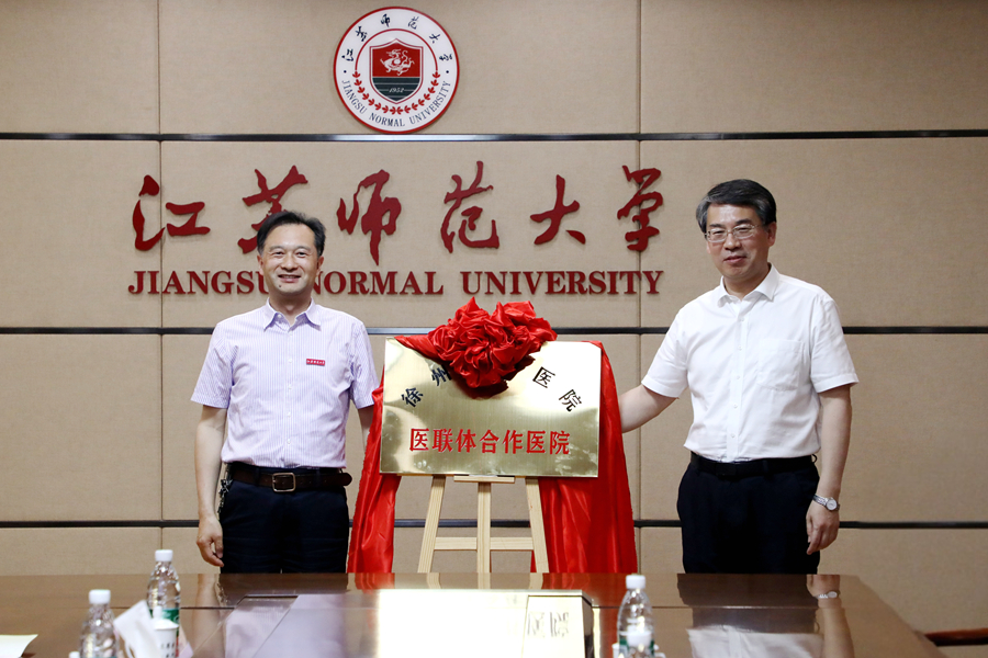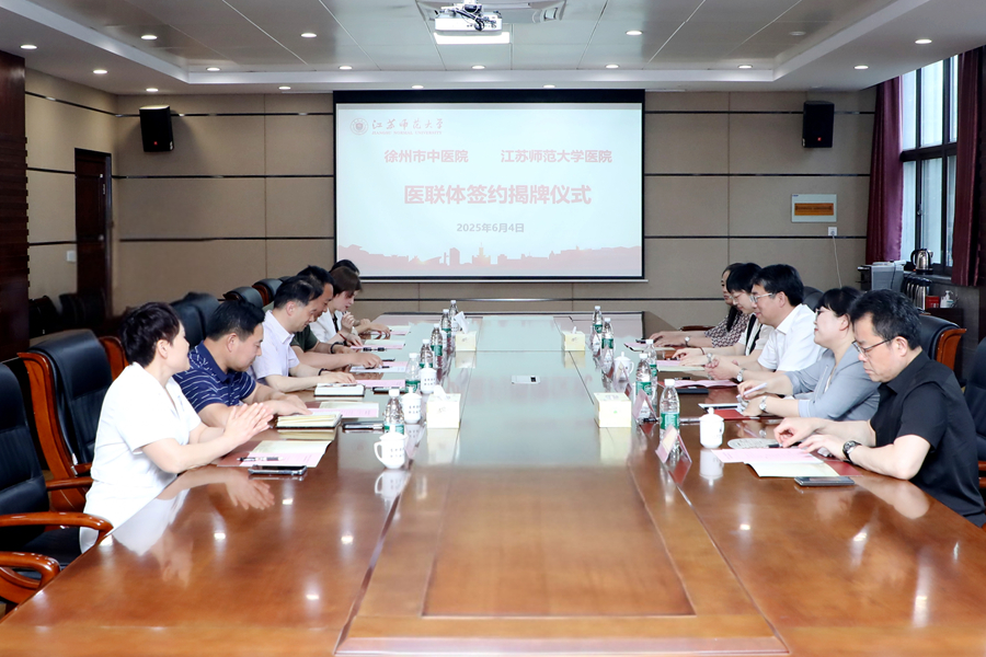 6月4日下午,徐州市中医院与江苏师范大学医院医联体签约揭牌仪式在我校举行。徐州市中医院党委副书记、院长牛勇,院办公室主任吴敏,对外联络部主任朱曙光及医务处、护理部等相关科室负责人出席活动。校党委常委、副校长张其飞出席仪式,校长办公室、后勤保障部负责人参加活动,活动由校卫健办主任张辉主持。