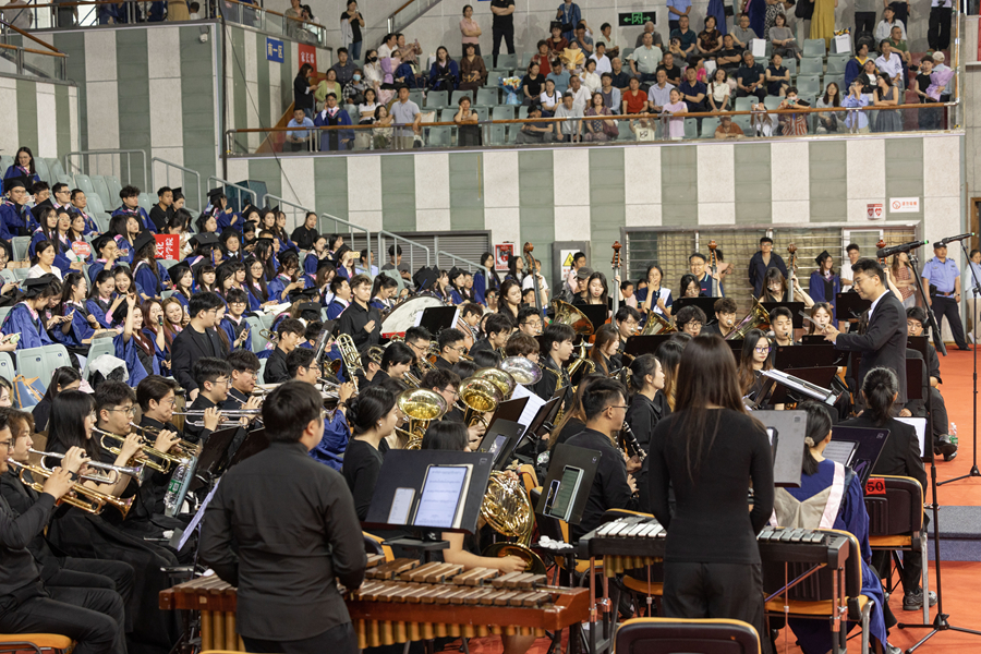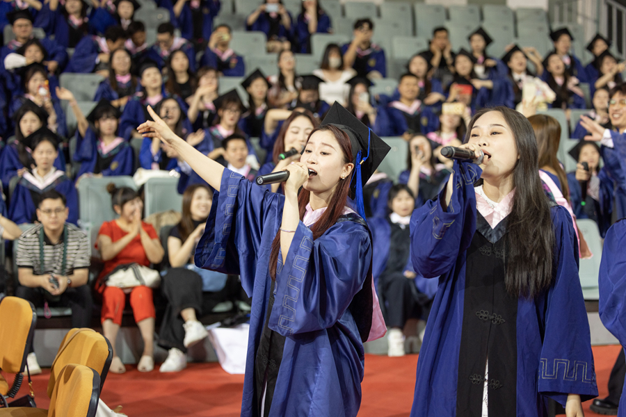 毕业典礼开始前,音乐学院研究生以精彩的快闪节目,表达了对母校的无尽感激与对师友的不舍之情。毕业典礼在热情洋溢的音乐串烧和师生合唱中圆满落幕。
