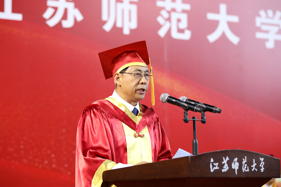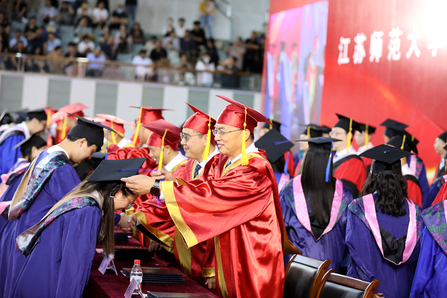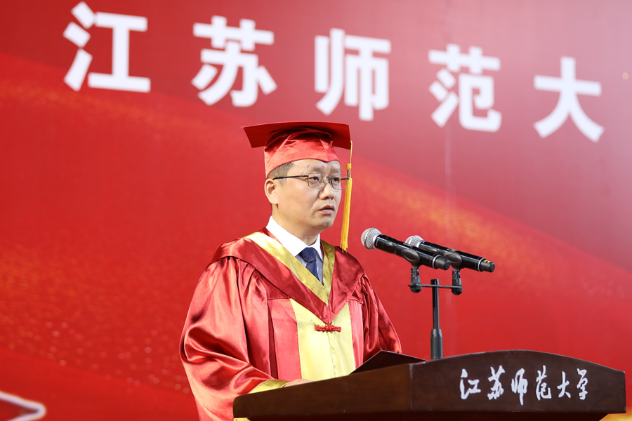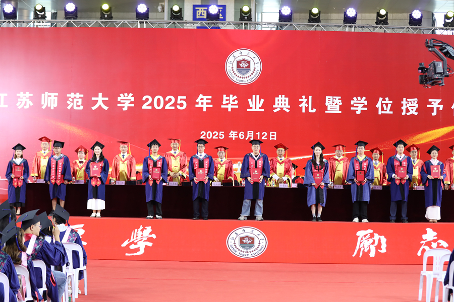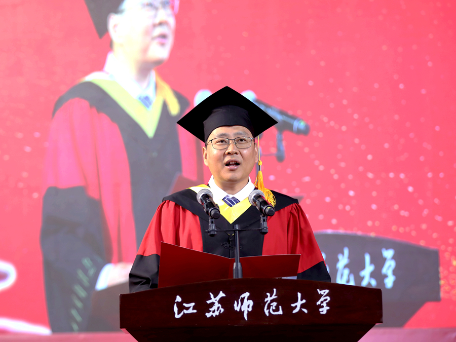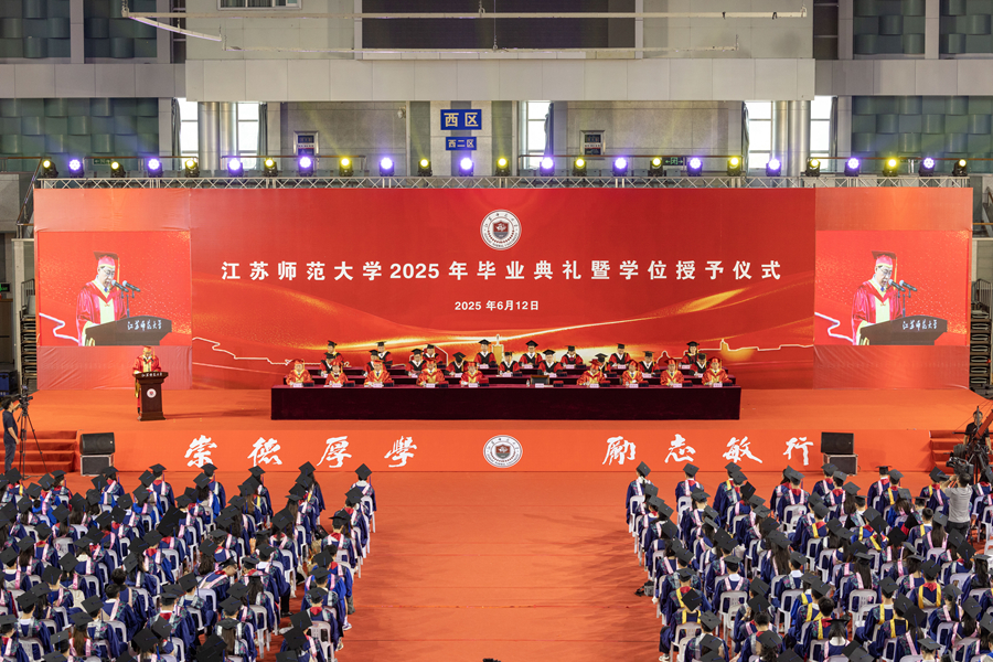 6月12日上午,江苏师范大学2025年研究生毕业典礼暨学位授予仪式在泉山校区体育馆隆重举行。全体校领导出席典礼,校学位评定委员会委员、研究生培养单位相关领导、研究生导师代表、2025年全体毕业研究生、研究生亲属代表、非毕业年级研究生代表参加典礼。校党委副书记蔡国春主持典礼。
