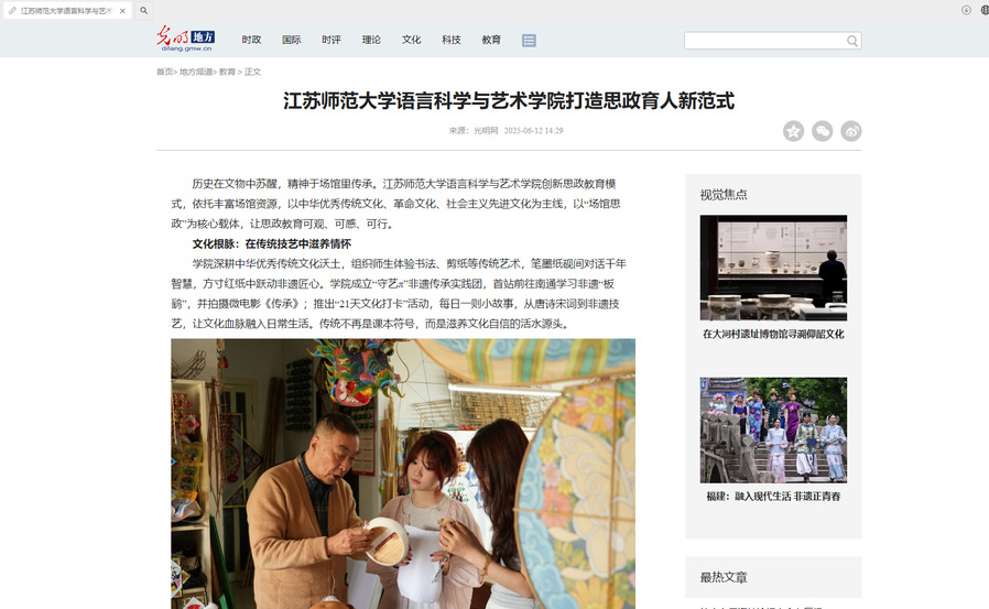 《光明网》6月12日报道我校语言科学与艺术学院打造思政育人新范式,报道内容如下:
