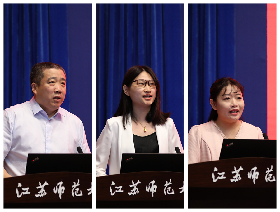 会上,徐州市委宣传部、江苏师范大学现场签署马克思主义学院共建协议,芮国强为贾萍、韩峰、李翠梅、原丰、孟维、张怀红、周长芝、孟庆喜、胡军英、王计兵颁发“江苏师范大学思政课特聘教师”聘书。中国矿业大学马克思主义学院院长阎国华,徐州市鲲鹏路初级中学思政课教师苏维、徐州市太行路小学思政课教师张珮依次发言,围绕如何提升思政课质量总结经验、建言献策。会议还发布了徐州市“博物馆里的思政课”系列课程,邀请了扬州市教育科学研究院副院长王恒富作专家主旨报告。