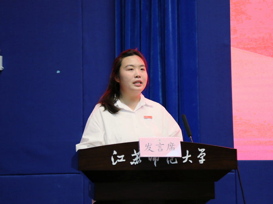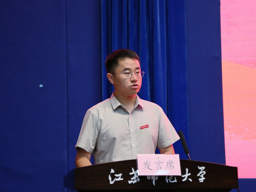 文学院2025级非全日制学科教学(语文)专业胡宇晴作为新生代表发言。她表达了成为一名江苏师大学子的荣幸与感恩,号召全体新生秉承“崇德厚学,励志敏行”的校训,崇德为基,德润初心;厚学为舟,深研致远;励志为帆,志拓新境;敏行为径,知行相生。
