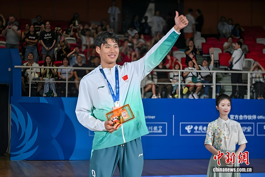 8月10日晚,2025年成都世界运动会泰拳项目男子86公斤级决赛在四川省体育馆举行。我校选手张程程代表中国队对阵南非选手Collins Damian Michael,最终一记KO终结比赛,夺得了铜牌。