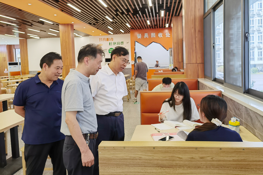 9月8日上午,校长杜增吉、副校长张其飞到云龙校区开展工作检查和现场办公。校领导先后走进数学与统计学院办公楼、智华楼、校医院、图书馆、教学楼、食堂及学生宿舍,深入了解数学与统计学院办公楼维修改造情况、智华楼家具配置与物业管理情况、校区停车统筹管理情况、校医院运行管理情况、教室黑板使用及后续更新计划情况、图书馆家具配置与自习空间供给情况、食堂就餐环境及菜价菜品调控情况、学生宿舍家具配置与住宿环境优化情况等。每到一处,校领导详细询问师生对学习、工作、生活环境的意见建议,认真听取相关部门工作汇报。