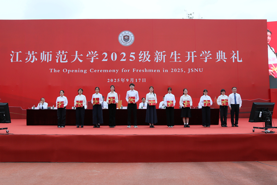 典礼在升国旗仪式中拉开帷幕,校长杜增吉发表了题为《以奋斗之姿,赴时代之约》的讲话,代表学校全体教职员工,向全体新生表示热烈欢迎,向辛勤培育广大学生的家长和老师,致以衷心感谢与崇高敬意。杜增吉勉励同学们,江苏师范大学是一所“初心如炬、使命如磐”“卓越笃行、追求一流”“锐意创新、敢为人先”的大学,同学们要“心系家国”,做矢志报国的苏师人;要“挺膺担当”,做开拓创新的苏师人;要“脚踏实地”,做行稳致远的苏师人。