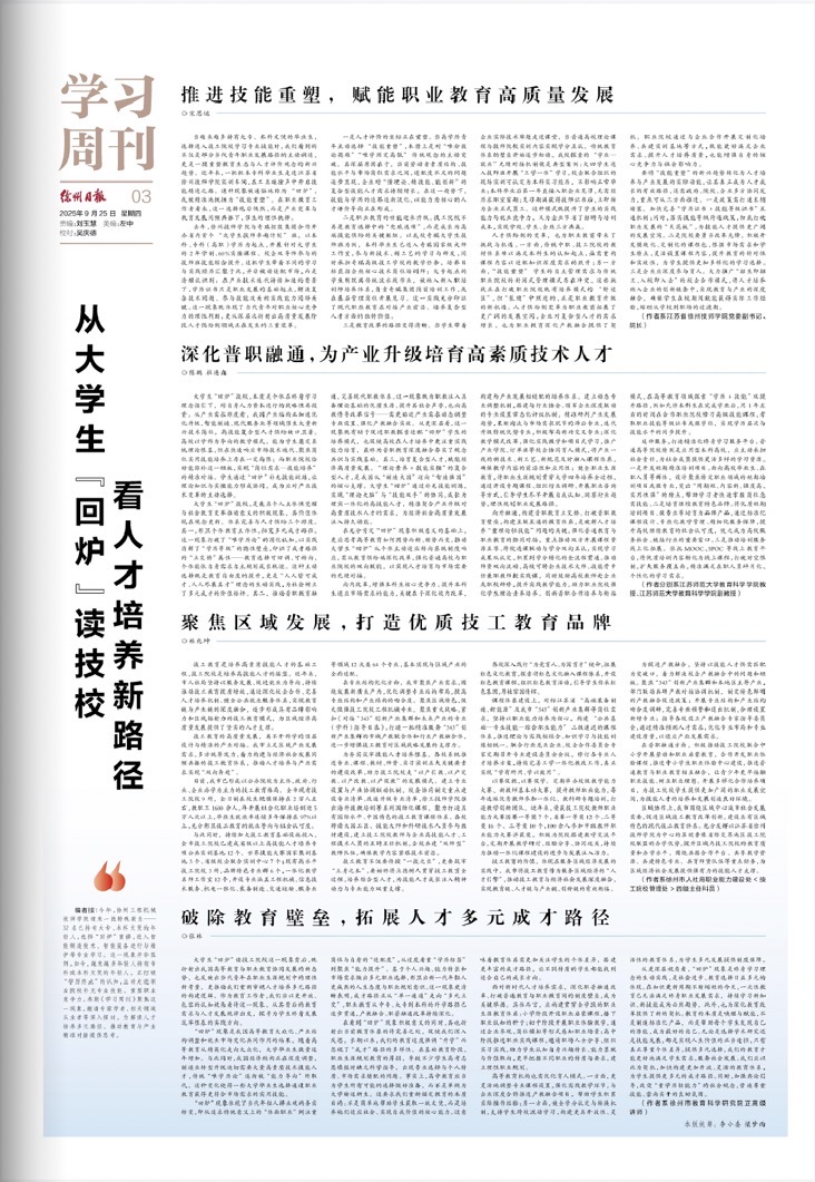 【徐州日报】陈鹏、杜连森:深化普职融通,为产业升级培育高素质技术人才