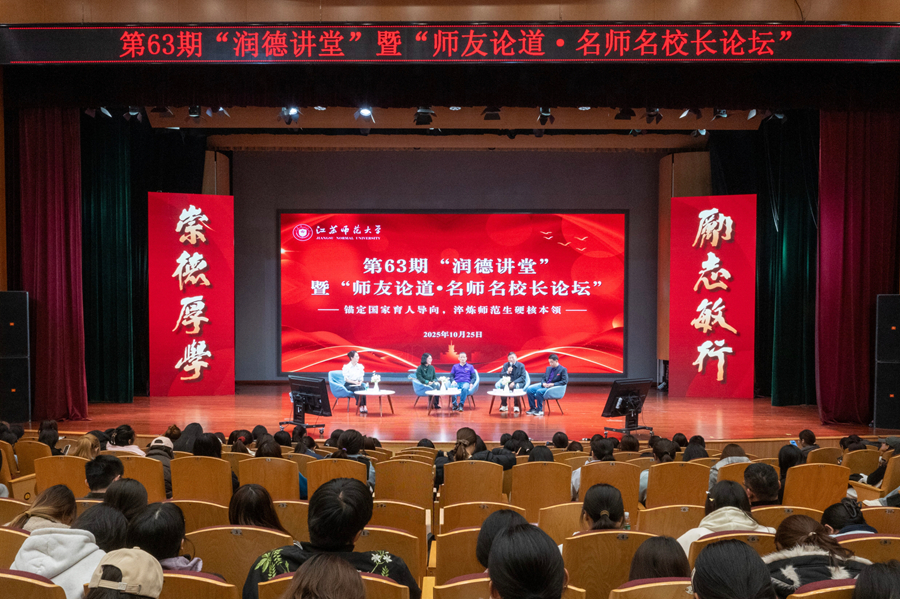 10月25日下午,党委学生工作部、国内合作处(校友联谊会办公室)在马可音乐厅共同举办第63期“润德讲堂”暨“师友论道・名师名校长论坛”活动。校友张飞、高青、王宗信和陈卫东围绕“锚定国家育人导向,淬炼师范生硬核本领”主题,分享实践经验、共话育人之道。