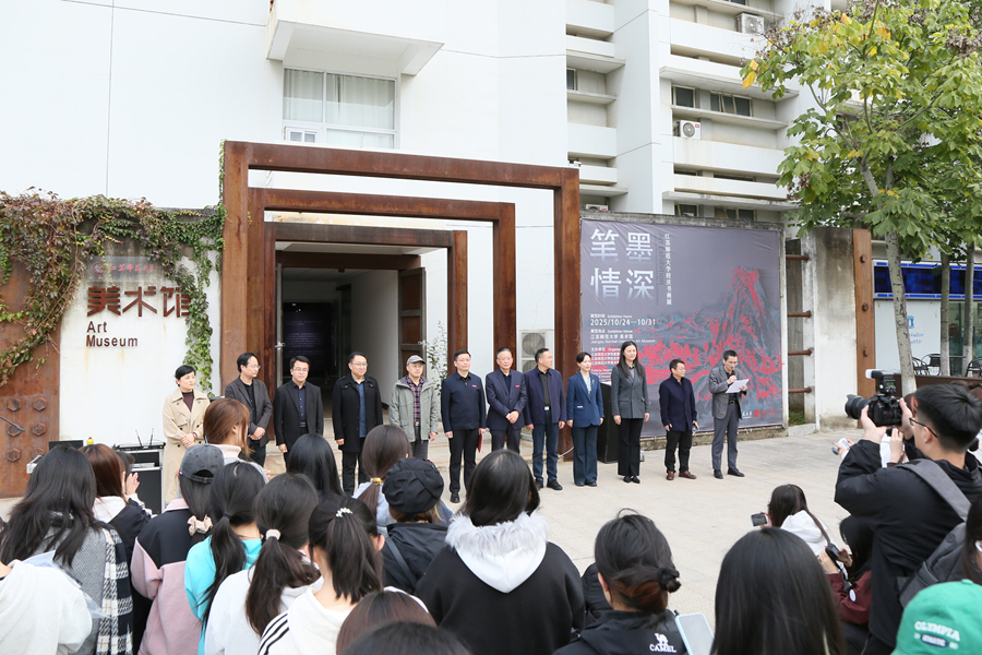 商亮在开幕式上致辞,他向为本次书画展付出辛勤劳动的工作人员以及所有倾情创作的师生、校友们表示感谢,阐释了举办此次书画展的重要意义。他表示,举办此次书画展,用最雅致、最真诚的笔墨,为学校庆生,是一次家人之间才情的展示与心灵的对话,以艺术为纽带串联起我们共同的记忆与对未来的期许。参展作品的一笔一划、一草一木、一景一物,无不是师生校友内心世界的真诚映照,共同展现了江苏师范大学大家庭强大的凝聚力、蓬勃的创造力。最后,商亮寄语全体师大人:“让我们将这份对‘家’的挚爱,化为前行的动力。以知识充实头脑,以艺术滋养心灵,共同把我们这个家建设得更加美好、更有品位、更富魅力。”