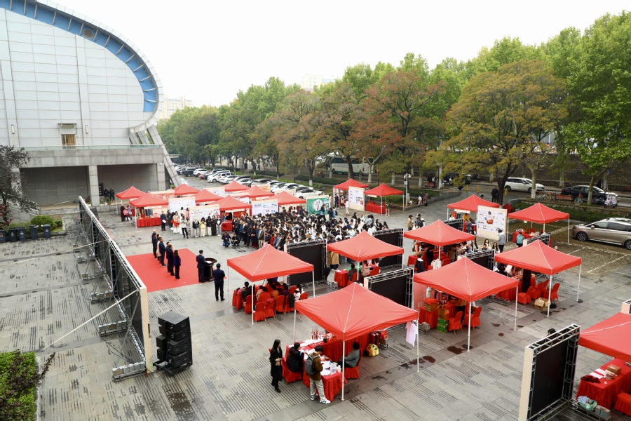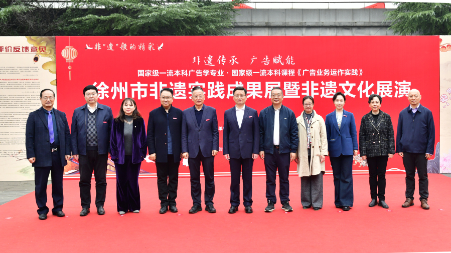为充分展示国家级一流课程《广告业务运作实践》教学实践成果,10月25日至26日,传媒与影视学院举办了主题为“非遗传承,广告赋能”徐州非遗实践成果展暨非遗文化展演活动。校党委常委、副校长商亮,校党委常委、宣传部部长孟召学,徐州市文化广电和旅游局二级调研员韩如海出席活动,徐州市文化馆、我校相关职能部门和传媒与影视学院负责同志参加活动。