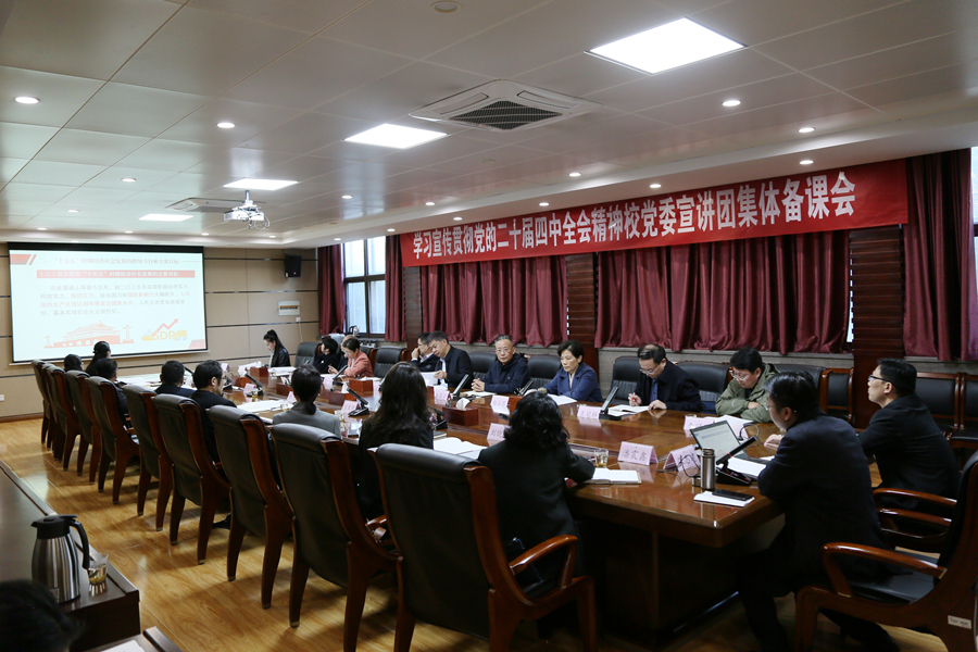 11月12日,学校召开学习宣传贯彻党的二十届四中全会精神校党委宣讲团集体备课会。校党委副书记蔡国春出席会议并讲话,宣讲团全体成员参加会议。