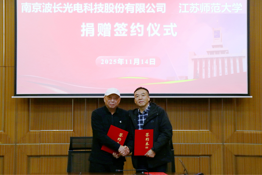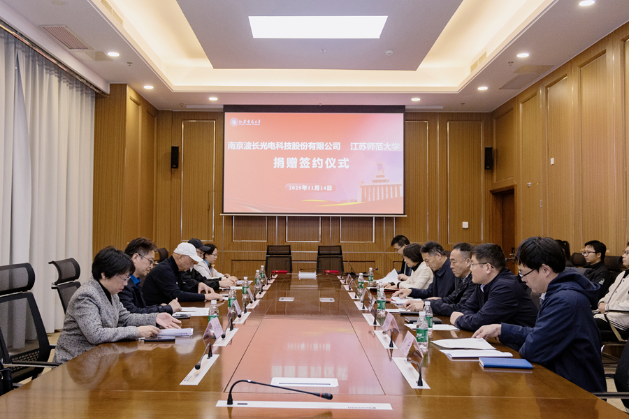11月14日下午,南京波长光电科技股份有限公司捐赠签约仪式在泉山校区举行。南京波长光电科技股份有限公司总经理吴玉堂,校党委常委、副校长黄德志出席仪式,企业相关部门、校教育发展基金会、物理与电子工程学院负责人及师生代表共同参加活动。