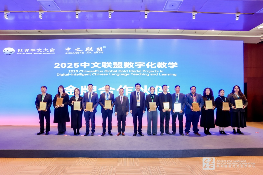 大会成果发布环节,杜增吉受邀参加“中文联盟新平台”上线启动仪式并为获奖代表颁奖。我校获评“2025全球中文联盟数智化教学金牌合作伙伴”,我校美国留学生陶海晨荣获“国际双语人才中英文演讲比赛推广大使”称号,并受邀参与展演活动。