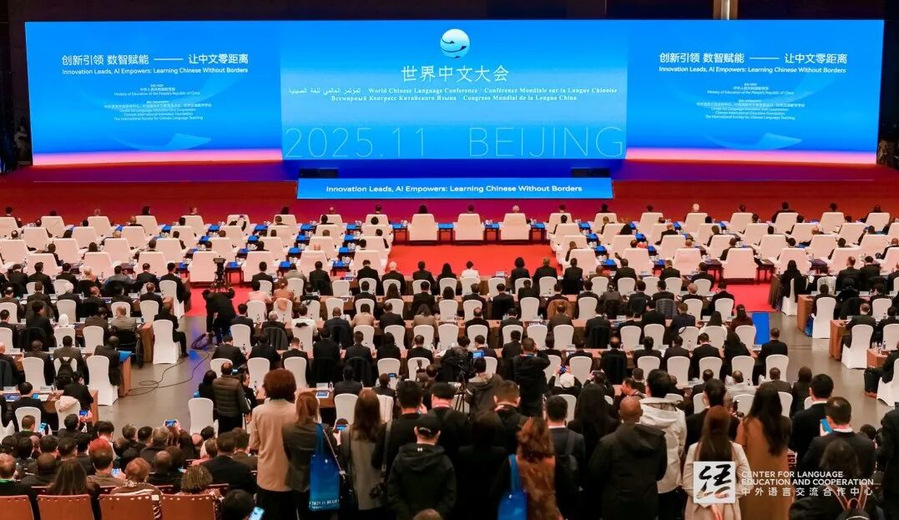 11月14日至16日,由教育部主办的2025世界中文大会在京举行。中共中央政治局常委、国务院副总理丁薛祥出席开幕式并发表主旨讲话。大会以“创新引领 数智赋能——让中文零距离”为主题,汇聚全球2000余名政府官员、高校代表及专家学者。校长杜增吉应邀率团出席大会,国际合作交流处(国际学院)负责同志参加大会及部分论坛。