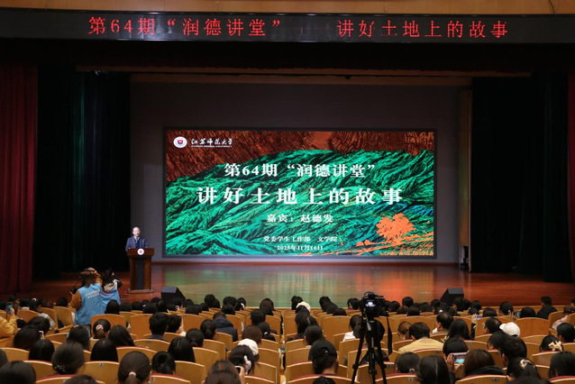 11月16日下午,由党委学生工作部、文学院联合主办的第64期“润德讲堂”在马可音乐厅顺利举行。著名作家、山东省作家协会原副主席、电视剧《生万物》的原著作者赵德发以“讲好土地上的故事”为主题,分享人生感悟与时代思考,与师生探讨土地与生活的紧密关联,以及文学作品影视剧改编的传播力量。
