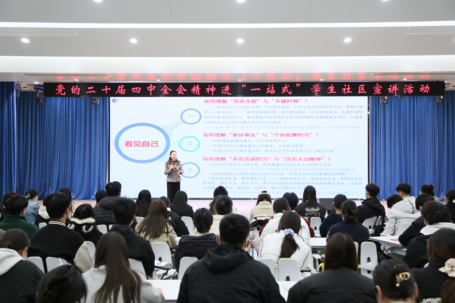活动中,马克思主义学院副教授匡艳丽作《党的二十届四中全会精神解析》报告,与现场的师生党员互动交流。