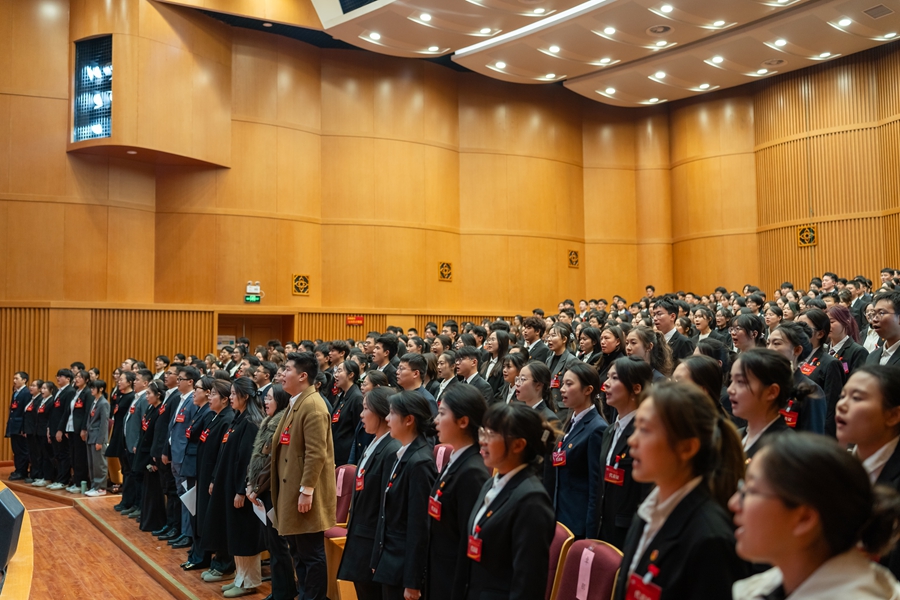 大会在庄严的国歌声中拉开序幕。商亮代表学校党委向大会的召开表示祝贺,向与会嘉宾和全体代表致以诚挚问候。他指出,大会的召开适逢全校深入学习贯彻党的二十届四中全会精神、谋划制定学校“十五五”规划之际,具有重要意义。他对学生会、研究生会过去一年取得的成绩予以充分肯定,并提出三点希望:一是青年学生要筑牢思想根基,在学思践悟中坚定青春信仰。二是学生骨干要磨砺意志品格,在率先示范中彰显责任担当。三是各级学生会、研究生会要提升组织效能,在改革创新中服务青年成长。他希望各级学生会组织以大会为新起点,引导和激励更多青年为助力学校高质量发展作出积极贡献,以奋斗之姿、实干之态在强国建设、民族复兴伟业中书写青春华章。