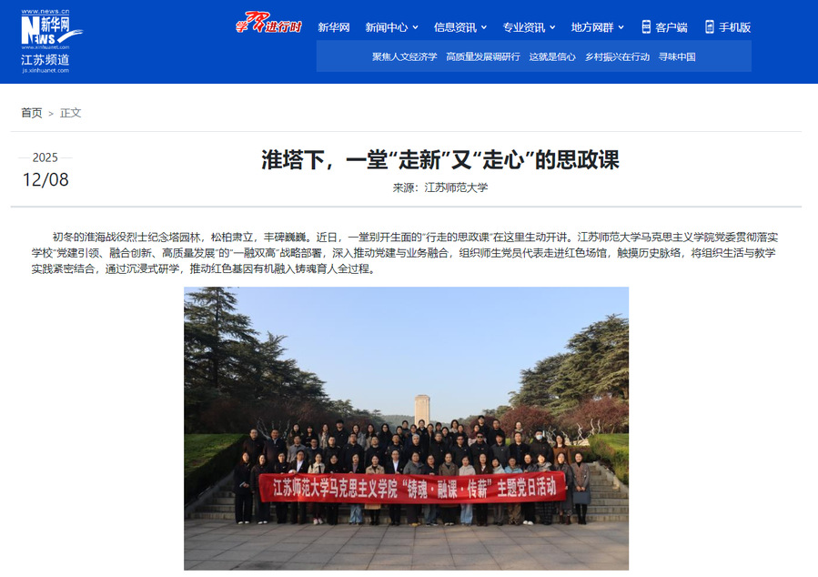 新华网江苏频道12月8日关注发表马克思主义学院把行走的思政课搬进淮塔的工作经验,内容如下: