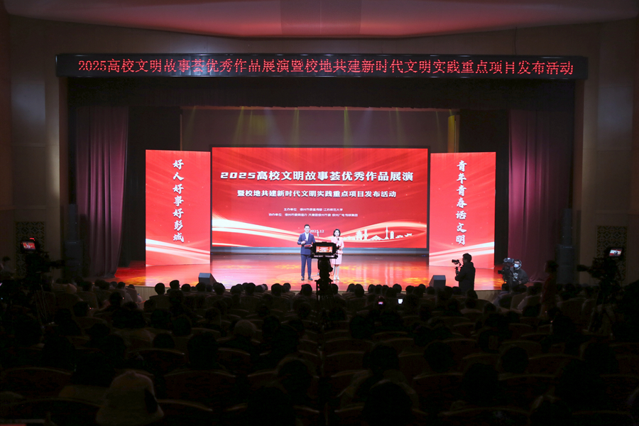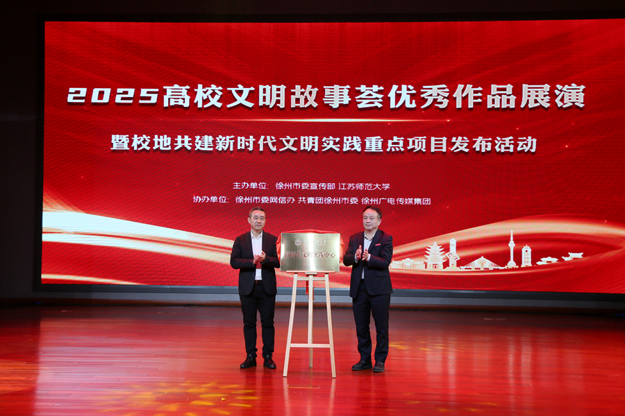 12月17日下午,2025高校文明故事荟优秀作品展演暨校地共建新时代文明实践重点项目发布活动在我校举办。本次活动主题为“好人好事好彭城·青年青春话文明”,由徐州市委宣传部、江苏师范大学主办,徐州市委网信办、共青团徐州市委、徐州报业传媒集团、徐州广电传媒集团、铜山区新时代文明实践中心、泉山区新时代文明实践中心协办。徐州市委常委、宣传部部长刘伟,我校党委书记芮国强、党委副书记蔡国春出席活动,市委宣传部、市委网信办、团市委、徐州广电传媒集团等单位部门相关负责同志,驻徐高校党委宣传部(党群工作部、党委工作部)、团委主要负责同志以及江苏师范大学师生参加活动。