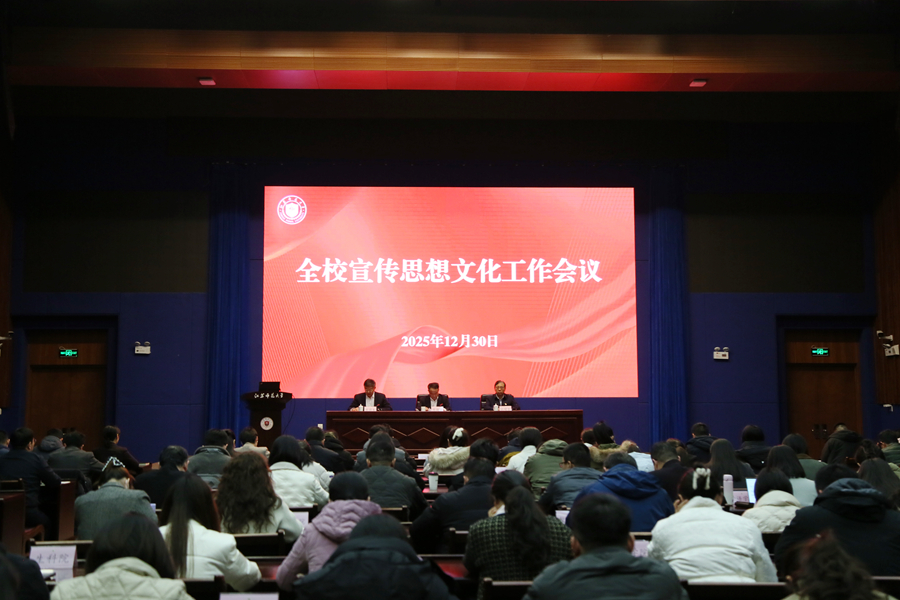 12月30日下午,江苏师范大学宣传思想文化工作会议召开。会议充分肯定了“十四五”期间学校宣传思想文化工作融入大局、服务发展所取得的显著成效,深入解读了宣传思想文化“十五五”规划报告。校党委书记芮国强,校党委副书记、校长杜增吉,校党委副书记蔡国春出席会议,各院级党组织、党群部门相关负责同志和发言单位代表参加会议。杜增吉主持会议,蔡国春就“十四五”期间宣传思想文化工作总结、当前形势、“十五五”专项规划要点作简要报告。