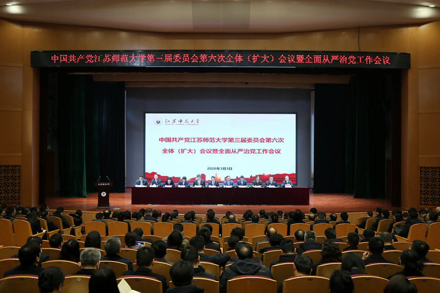 3月3日上午,中国共产党江苏师范大学第三届委员会第六次全体(扩大)会议暨全面从严治党工作会议在马可音乐厅召开。校领导班子成员、党委委员、纪委委员、全体中层干部、市级及以上“两代表一委员”、校学术委员会委员及各民主党派主要负责人参加会议。校党委常委会主持会议。
