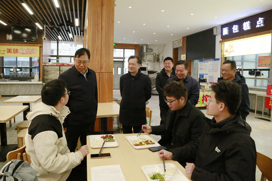 3月4日下午,校党委书记芮国强、校长杜增吉、副校长商亮、副校长张其飞在泉山校区、云龙校区实地检查民生实事推进情况及开学准备工作情况。