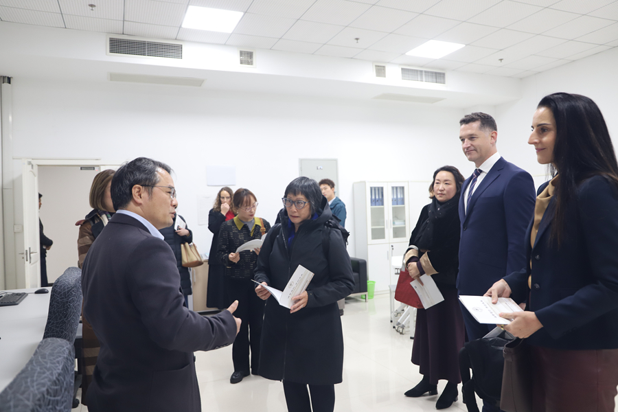 会前,代表团一行参观了语言科学与艺术学院、数学与统计学院、化学与材料科学学院及外教公寓。