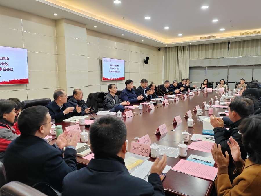 3月19日,徐州高校老年体协2026年工作会议暨三届四次理事会会议在我校召开。校党委副书记蔡国春,徐州市老年体协会长赵祥利、副会长许志强,徐州高校老年体协名誉会长吴永平、蒋留生等出席会议。徐州高校老年体协16家会员单位代表参加会议,会议由吴永平主持。