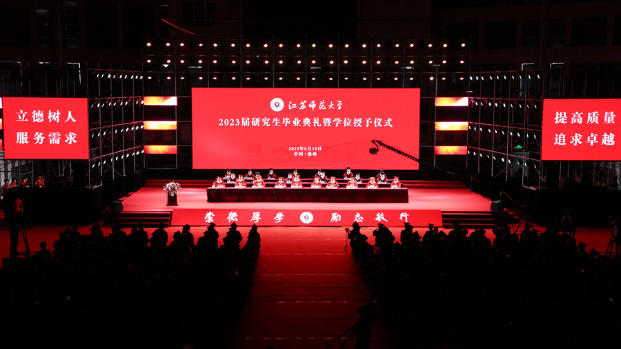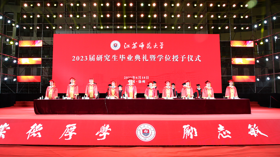 6月18日上午,江苏师范大学2023届研究生毕业典礼暨学位授予仪式在泉山校区体育馆隆重举行。全体校领导出席典礼,校学位评定委员会委员、承担研究生培养任务的各学院领导、研究生导师代表、2023届全体毕业研究生、往届毕业研究生代表、研究生亲属代表、非毕业年级研究生代表参加典礼。校党委副书记岑红主持典礼。