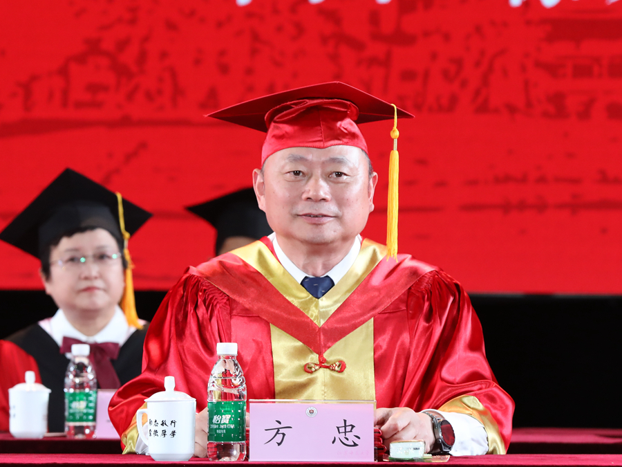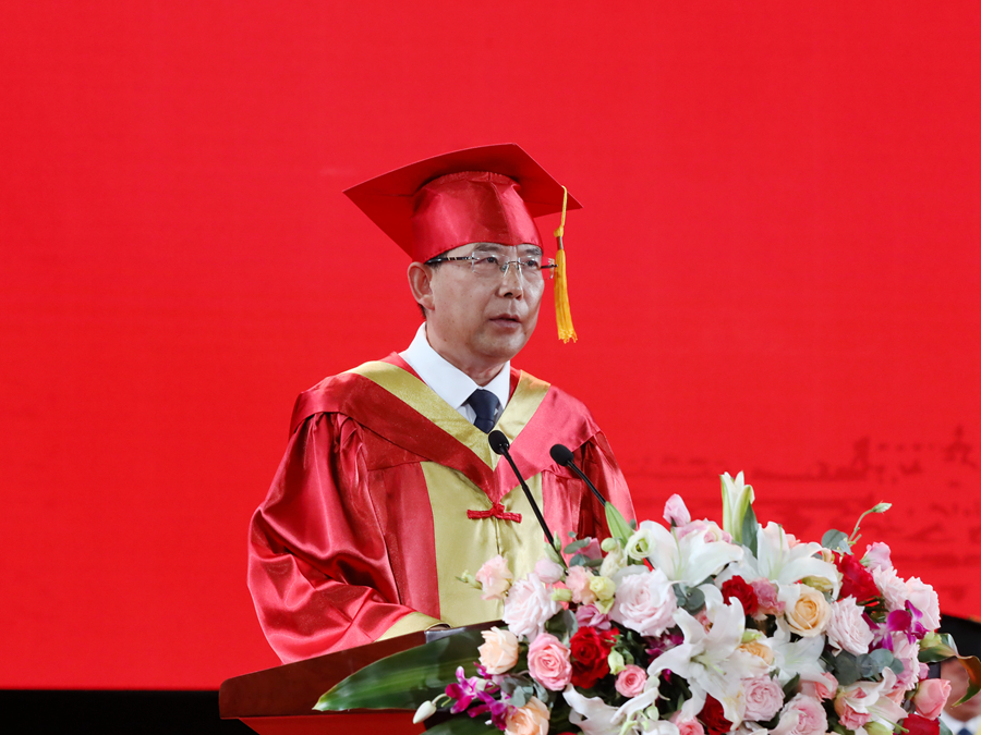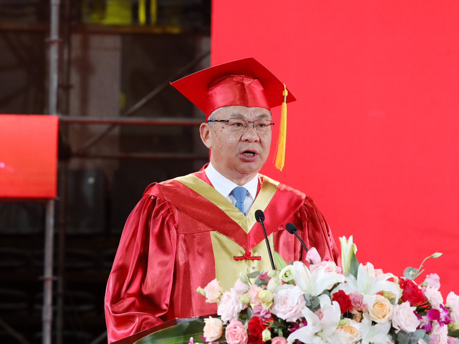 伴随着庄严的国歌声,毕业典礼正式开幕。校长、校学位评定委员会主席周汝光在典礼上致辞,代表学校向圆满完成学业的毕业生们表示热烈祝贺,向辛勤培育、陪伴支持毕业生的老师和家长致以衷心感谢。周汝光以“擦亮青春底色,唱响时代之音”为题,饱含深情地回顾了全体毕业研究生在读期间取得的成绩,充分肯定了大家在疫情防控期间与学校息息相通,甘苦与共,用实际行动关注支持学校事业发展作出的努力。他寄语全体毕业研究生,生逢伟大时代,不仅要学有所成,更要学有所思、学有所用,做持之以恒的自律者、坚韧不拔的奋斗者、矢志不渝的爱国者。周汝光勉励全体毕业研究生要传承好“崇德厚学,励志敏行”的校训,心中有阳光,脚下有力量,笃行致远、惟实励新,不坠青云之志,创造无愧于时代的精彩人生。