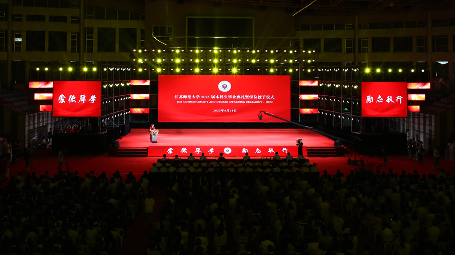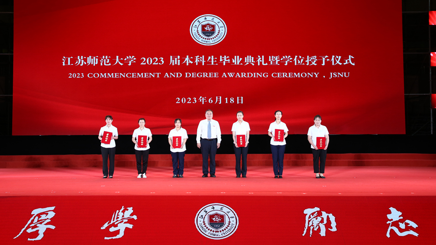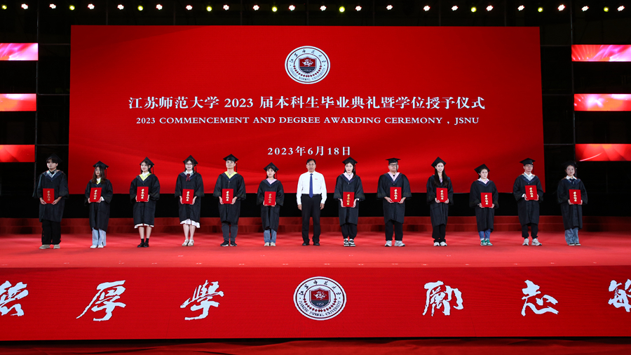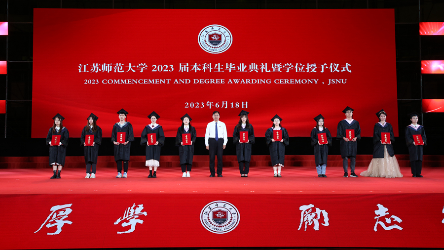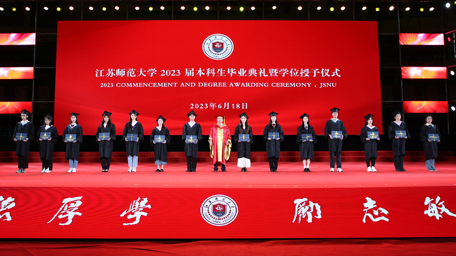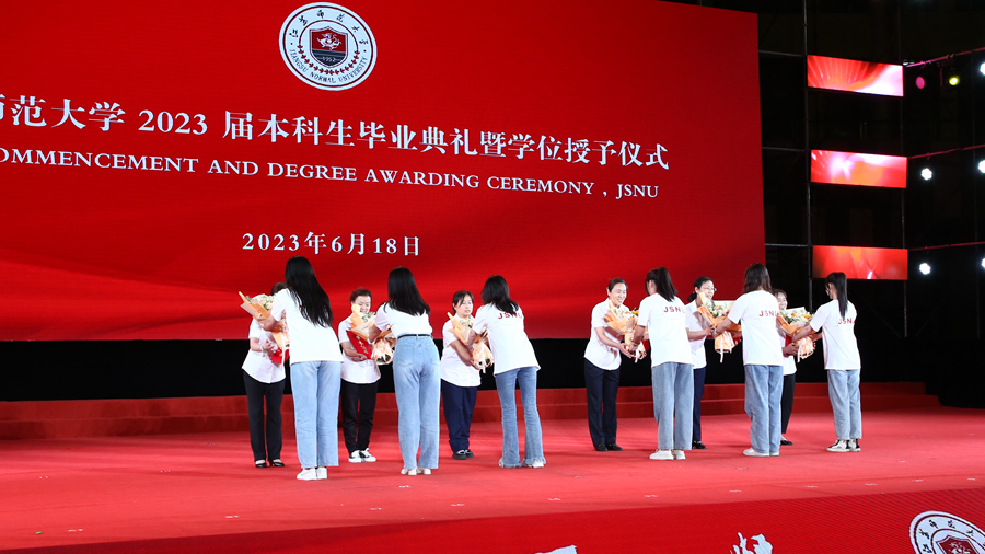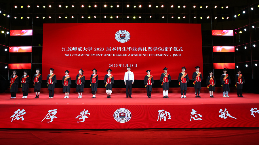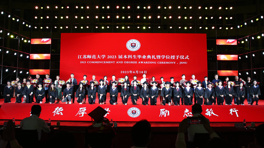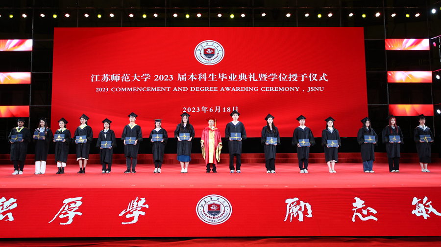 整场典礼在辅导员合唱团演唱的《同桌的你》歌声中落下帷幕,全体2023届江苏师大毕业生也带着母校和校友们的殷切期盼,意气风发开启新征程。