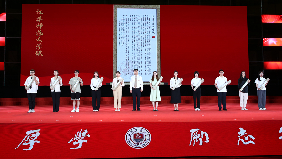 为弘扬尊师重教的优良传统,激励广大同学积极投身教育事业,传承“大先生”奋斗精神,江苏师范大学南京校友会和江苏春雨教育集团有限公司在学校设立“江苏师范大学十佳师范生”荣誉评选项目。校党委常委、副校长王晓三为首届“十佳师范生”授予荣誉证书,南京校友会副会长严军为获奖同学颁发荣誉奖牌。