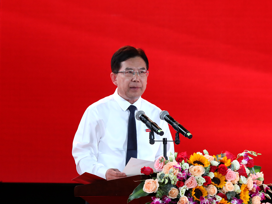 江苏圣理工学院-中俄学院2023届本科毕业生牛牧原的父亲,山东省新泰市汶城中学校长,山东省教育科研先进个人,“泰山名校长”荣誉称号获得者菅本凯,作为家长代表发言。他向圆满完成学业的同学们表示热烈的祝贺,向所有为广大同学成长成才倾注大量心血和无数辛劳的领导与老师致以崇高敬意和诚挚感谢。同时他希望同学们常怀感恩,勿忘师恩;饮水思源,勿忘母校;脚踏实地,勿忘奋斗。