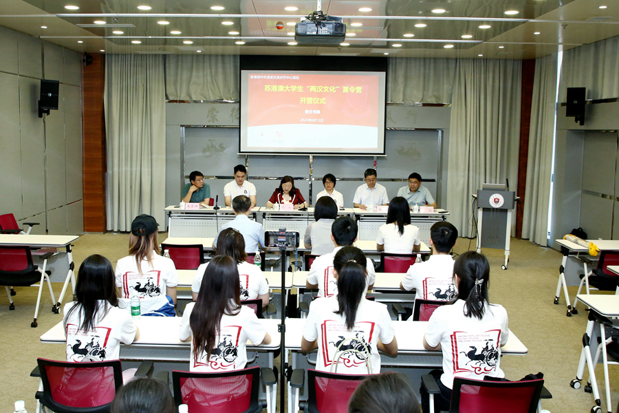 6月12日至17日,由国家教育部中外语言交流合作中心立项资助,我校主办的2023年“体验楚韵汉风,传承优秀文化”苏港澳大学生“两汉文化”夏令营顺利举办。6月13日上午的开营仪式上,校党委副书记岑红出席并致辞。港澳台事务办公室负责人、敬文书院师生代表与澳门大学张昆仑书院参营师生参加仪式。