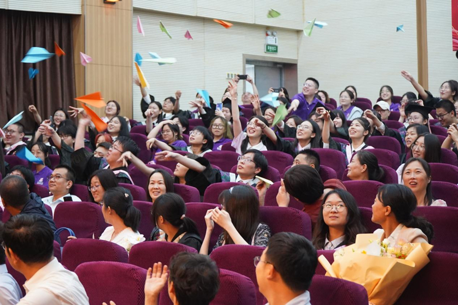 最后,全体毕业生合唱歌曲《那些年》,并放飞手中寄语未来、写满梦想的纸飞机。“逐风四载,奋楫笃行积跬步;展志六月,守正出新致千里”。毕业典礼在激昂的《毕业歌》的音乐声和师生们依依不舍中落下帷幕。衷心祝愿2023届毕业生前程似锦!一帆风顺!