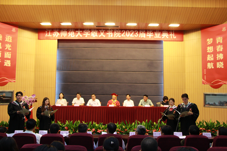 6月15日下午,敬文书院2023届本科生毕业典礼在西教2号楼101报告厅举行。校长周汝光,校党委副书记、副校长刘广登,教务处、学生工作处、书院办学相关学院党政领导、敬文书院领导及导师代表、院友代表、毕业生家长代表等出席仪式。书院管理团队全体成员、2023届本科毕业生参加典礼。
