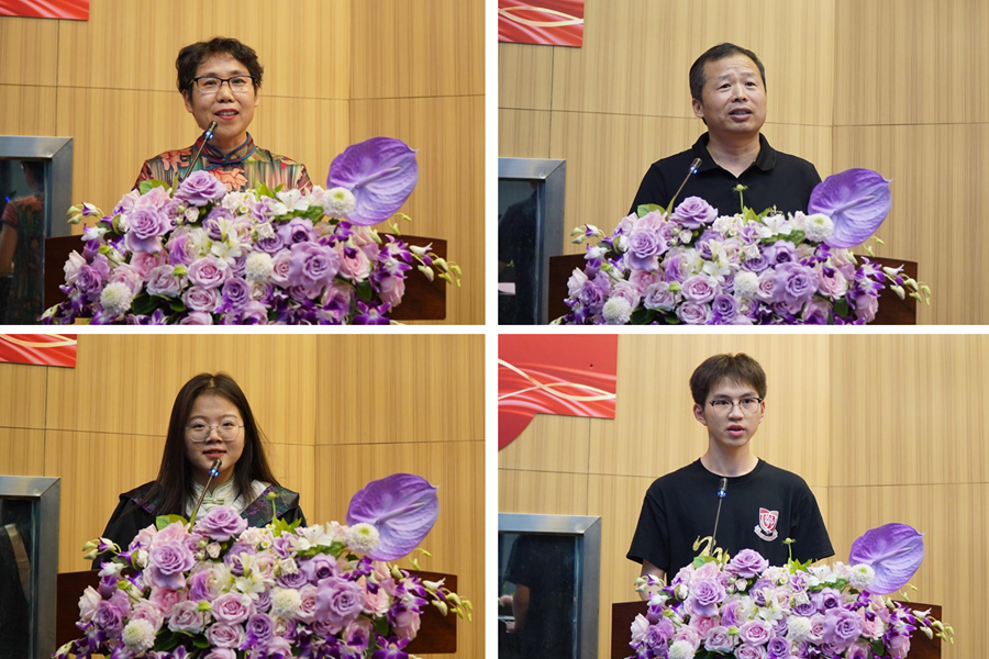 毕业生代表19级数学师范班张译丹,非毕业班学生代表20级英语师范班乔楷,优秀院友代表南京邮电大学教师齐沁儿,家长代表19级汉语言文学师范班刘芯阳同学的父亲刘勇同志,导师代表文学院王淑梅教授依次发言。