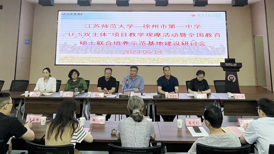 近日,江苏师范大学-徐州一中全国教育硕士联合培养示范基地建设研讨会暨教育硕士“U-S双主体”培养项目教学观摩活动在徐州一中紫金校区举行。副校长蔡国春,徐州一中党委书记、校长陈青出席活动,我校研究生院有关负责同志,以及部分指导教师等参加活动。
