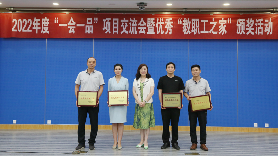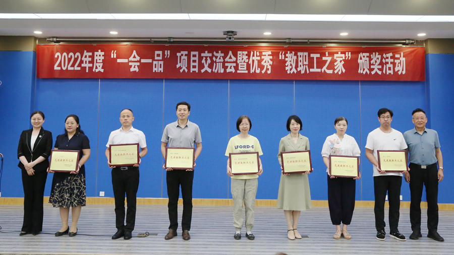 为进一步激发基层工会妇联组织活力,充分发挥先进基层组织的示范带动作用,近日,学校举办2022年度“一会一品”项目交流会暨优秀“教职工之家”颁奖活动。校党委副书记岑红,徐州市妇联副主席王晓丹,校党委常委、宣传部部长孟召学及相关部门负责人出席会议,全校各基层工会主席、妇联主席及“一会一品”项目负责人、受表彰的先进集体代表等60余人参加活动。校妇联负责同志主持活动。