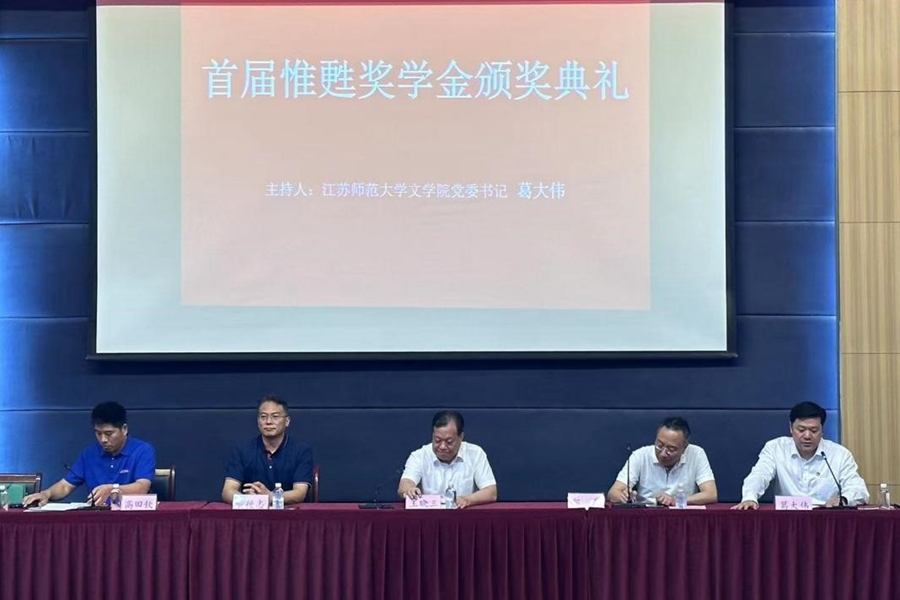 近日,学校首届惟甦奖学金颁奖典礼在西教二号楼报告厅举行。校党委常委、副校长王晓三,无锡校友会会长郑磊,校研究生院、教育发展基金会办公室、文学院相关负责同志,惟甦奖学金管理委员会成员以及文学院部分教师代表参加典礼仪式。