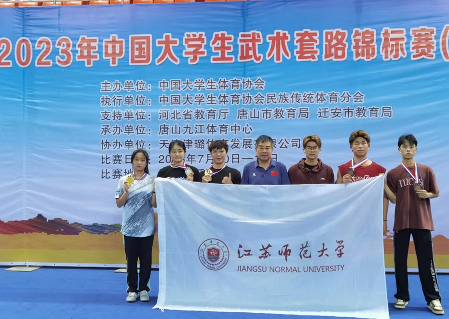 我校选派出由体育学院副院长宋桦任教练,6名(4男、2女)运动员组成的武术队参加丙组的比赛。经过为期四天的激烈争夺,获得2枚金牌、1枚银牌、2枚铜牌、2个第四名、1个第五名、1个第六名的优异成绩,创我校参加全国大学生武术套路锦标赛历史最好成绩。我校武术队发扬吃苦耐劳、团结奋进、顽强拼搏的精神,陈诺同学获得女子丙组自选枪术第一名、自选剑术第二名、双剑第六名;张来彬同学获得男子丙组少林拳第一名和软器械第五名;陈敬果同学获得男子丙组通背拳第三名;虢京城获得男子丙组少林拳第三名;范雅娴同学获得女子丙组自选刀术和双刀双项第四名;范雅娴同学获“体育道德风尚奖运动员”称号;宋桦获“体育道德风尚奖教练员”称号。