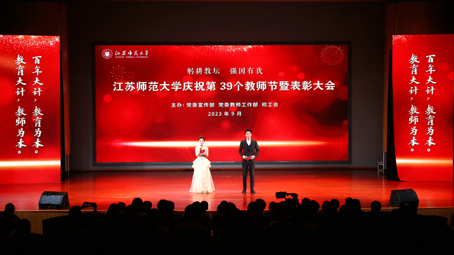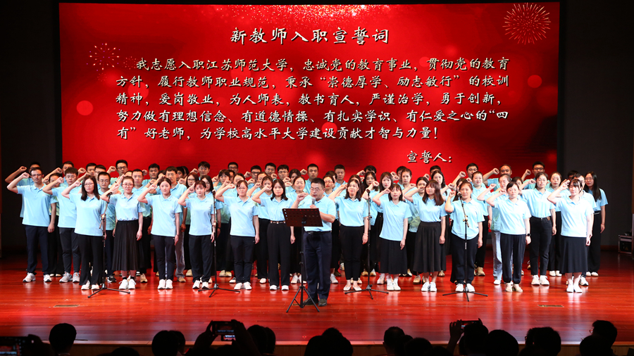 白手起梁溪风雨兼程弦歌不辍,丹青开锦卷德才并重理念常新。一代代江苏师大人携手并进,接续传承着精神的火炬。每一年总有一批新鲜的血液注入江苏师大的教师队伍。大会上,新入职教师进行了入职宣誓。表彰大会在青年教师们的铿锵誓词中落下帷幕。