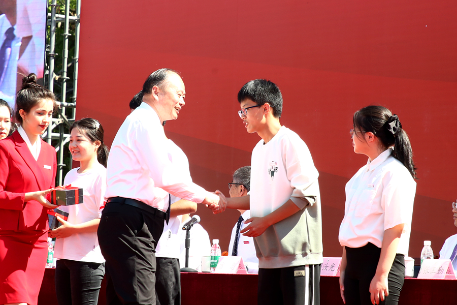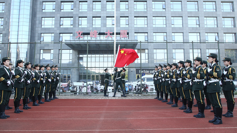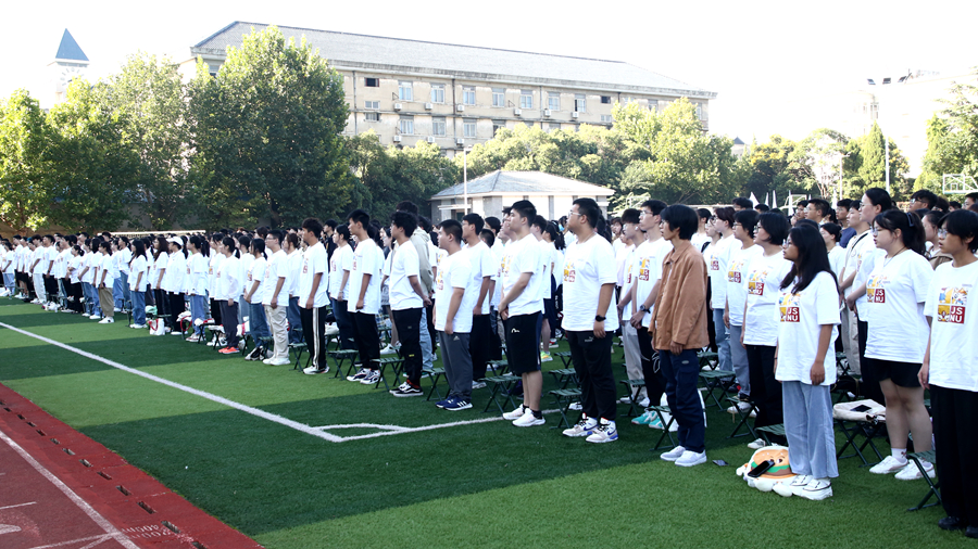 典礼开始前举行了升国旗仪式。鲜艳的五星红旗在国旗班的护卫下,从田径场上空冉冉升起。师生们全体起立,高唱国歌,向国旗行注目礼。